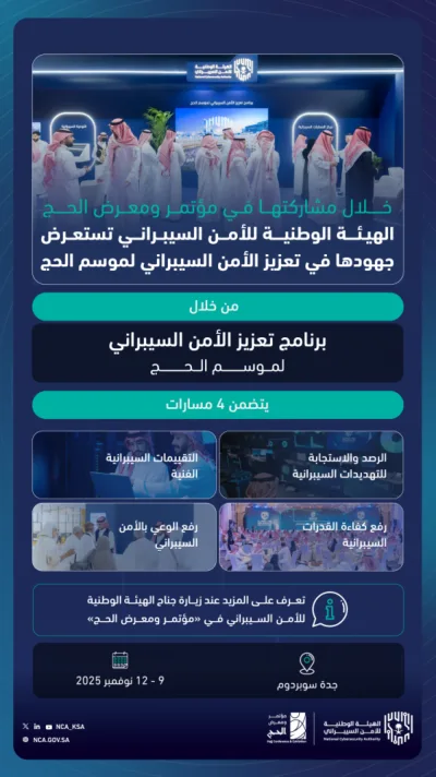 الأمن السيبراني تستعرض جهودها خلال مؤتمر ومعرض الحج