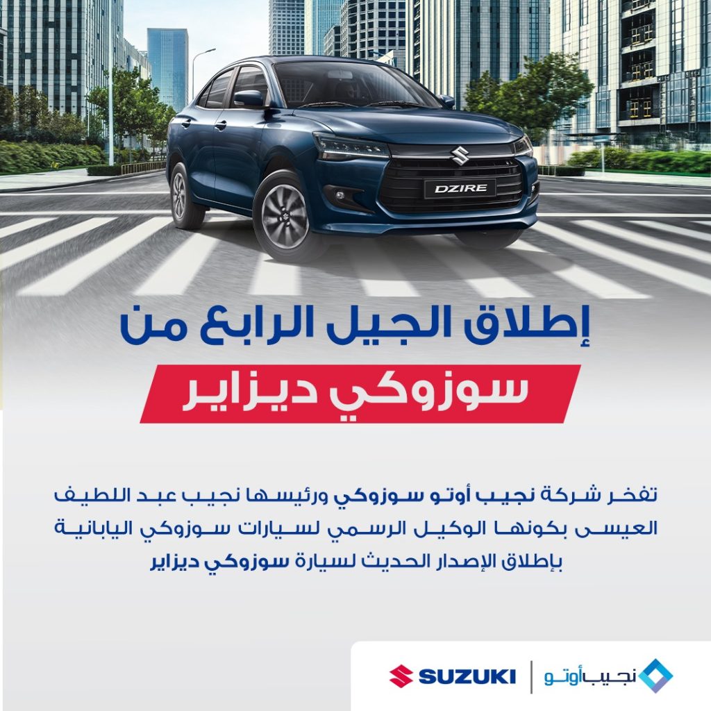 أعلنت شركة نجيب أوتو سوزوكي بكونها الوكيل الرسمي لسيارات سوزوكي اليابانية للسيارات العريقة والغنية عن التعريف في المملكة العربية السعودية، بكل فخر واعتزاز عن إطلاقها الإصدار الحديث لسيارة ديزاير.